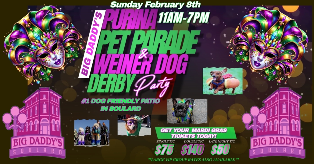 Mardi Gras Dog Parade is on Sunday February 8th, 2026.